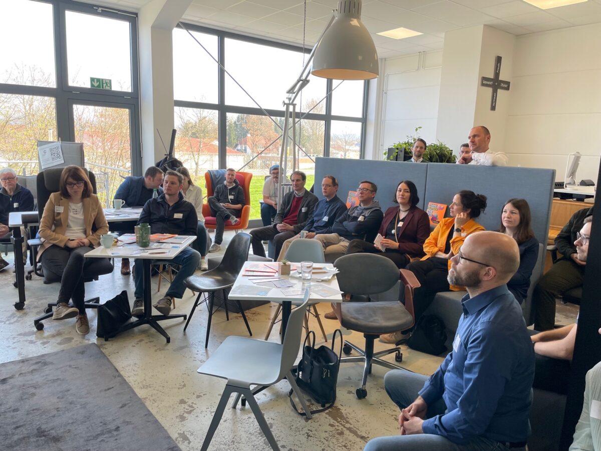 Die modernen und inspirierenden Räumlichkeiten des Coworking-Spaces in Kemnath boten für 35 Teilnehmende aus der Wirtschaft, Start-up Szene und aus anderen Bereichen der Gesellschaft das perfekte Ambiente für den Vortrag zu einem brisanten Thema: „Nutzerzentrierte KI“ von DGO-Projektleiter André Pscherer.