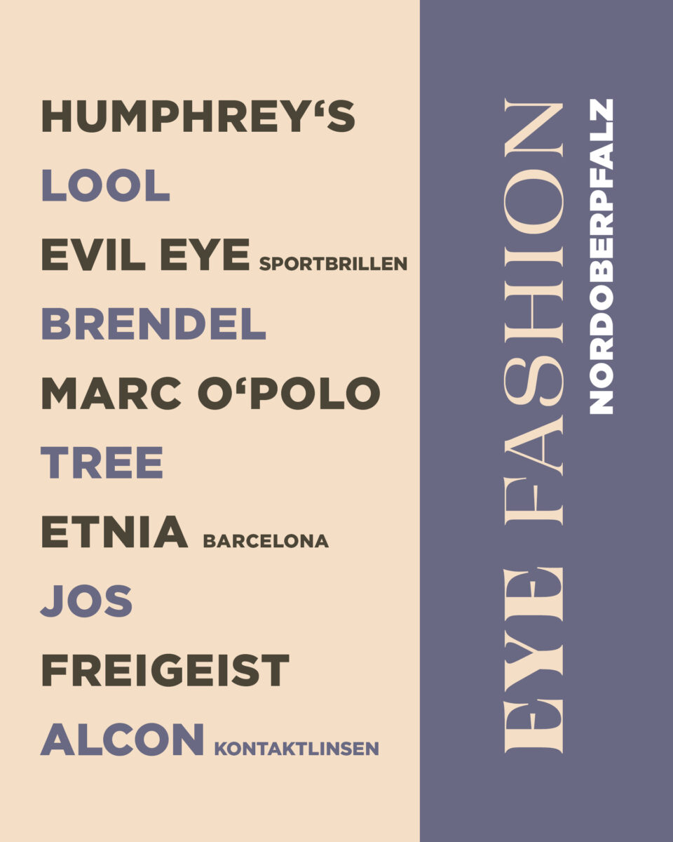 An diesem abwechslungsreichen Tag haben die Besucher der Qual der Wahl. Zehn namhafte Brillen- und Kontaktlinsen-Hersteller aus Deutschland, Österreich, Italien, Spanien und ganz Europa werden an diesem Tag mehr als 5000 ihrer neuesten Modelle ausstellen. Unter dem Motto „Entdecke die neuesten Trends der großen Brillenmarken“ ist von B wie Brendel über M wie Marco Polo bis T wie Tree garantiert für jeden Geschmack und für jeden Geldbeutel das Passende dabei. Von klassisch bis avantgardistisch, von elegant bis sportlich – bei der Eye Fashion findet man die perfekte Brille, die den persönlichen Stil unterstreicht. Zu sehen sind Lese-, Fern- und Gleitsicht- sowie Sonnen- oder Sportbrillen in großer Auswahl für Jung und Alt, Männlein und Weiblein. Jeder kann sich völlig unverbindlich beraten und inspirieren lassen.