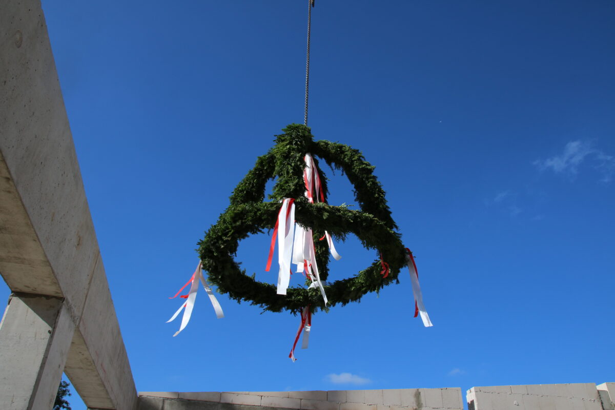 Das Unternehmen lud Politik, Beteiligte und ausführende Arbeiter zum Richtfest ein. Der Vorsitzende der Geschäftsführung Martin Weiß möchte die äußere Hülle in den nächsten Wochen vollständig schließen. Dann kann über den Winter der Innenausbau weitergeführt werden.