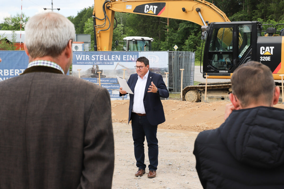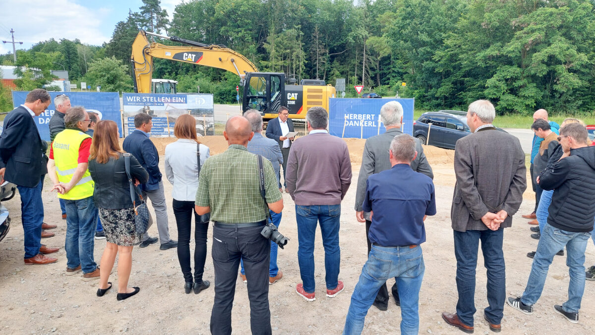 Die ersten Maschinen der ausführenden Baufirma Herbert Dankerl aus Cham stehen schon an der Anschlussstelle B 85 / Industriestraße bereit: Bis Mitte 2025 sind sie für die Erneuerung der Wackersdorfer Hauptschlagader im Einsatz. Die Industriestraße dient als Verbindung zu den Wackersdorfer Industriegebieten und zum Murner See. Alleine knapp 6000 Ein- und Auspendler nutzen die Route täglich. “Hinzu kommen der Schwerverkehr, Urlaubsgäste und Privatfahrten – nach 34 Jahren hinterlässt das Spuren”, schilderte Bürgermeister Thomas Falter beim Spatenstich.