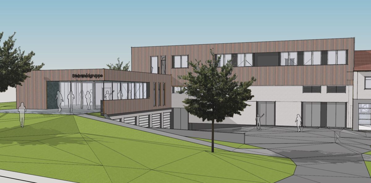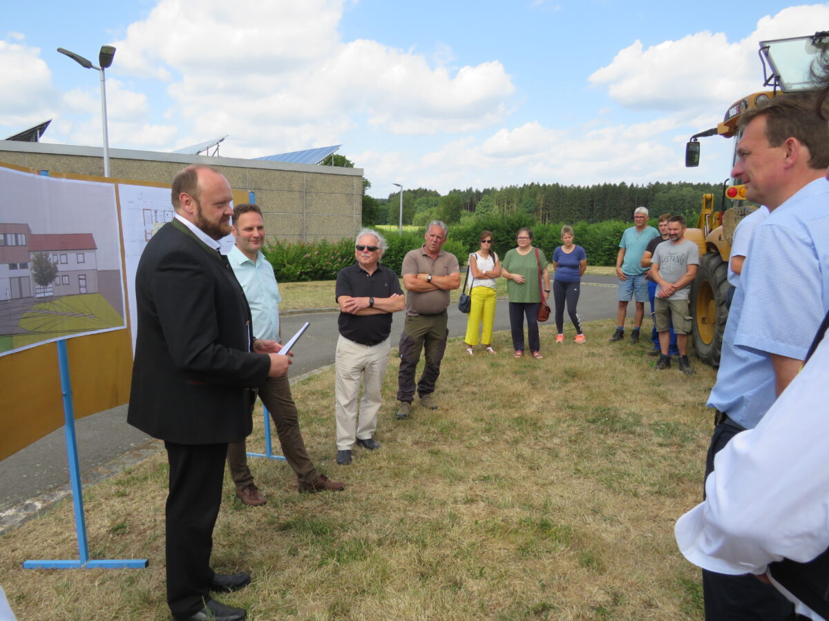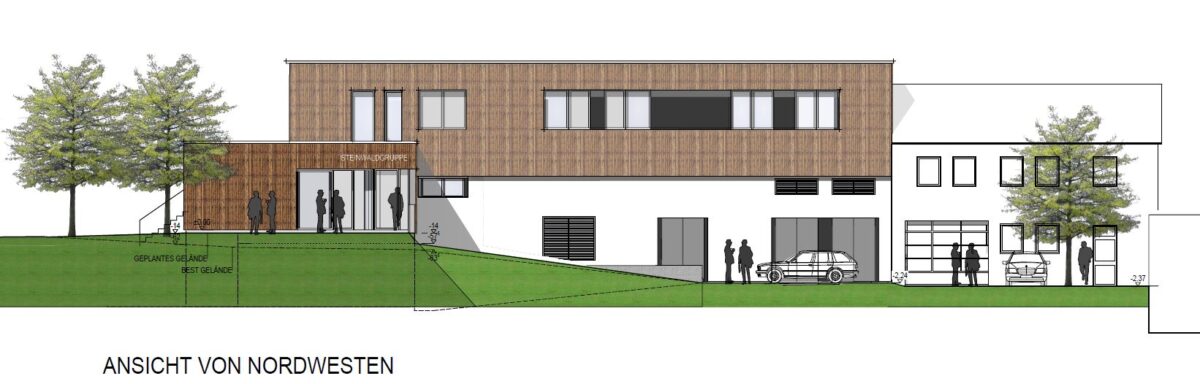 Architekt Josef Schöberl gab einen kurzen Überblick über die geplante Baumaßnahme. Der symbolische Spatenstich startet das Bauvorhaben offiziell. Die geplante Maßnahme besteht aus zwei Gebäudeteilen. Auf der bestehenden Garage baut sich ein Konferenzgebäude auf. Auf dem Werksgebäude entsteht ein Bürotrakt. Architektonisch gliedern sich die Baukörper um den Werkhof. Die Gebäude fügen sich, in Holzbauweise, harmonisch in die ländliche Umgebung ein. Der Bürotrakt beinhaltet 7 Büros, eine Registratur, die Teeküche und Technikräume. Der Konferenzraum ist das Herzstück des Büroneubaus. Es ist ein 60 Quadratmeter großer heller Raum und bietet sich an für vielerlei Nutzung.