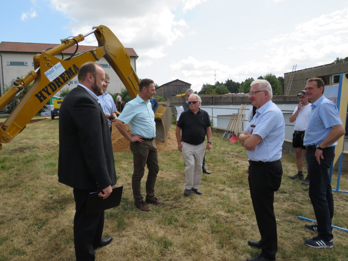 Mit dem symbolischen Spatenstich am Montag startet die Erweiterung der Gebäude des Zweckverbands zur Wasserversorgung Steinwaldgruppe auf dem Gelände der Wasseraufbereitungsanlage in Oed/Kirchendemenreuth. Mit dem Bau des neuen Bürogebäudes stellt sich die Steinwaldgruppe in der Verwaltung für die Zukunft sicher auf.