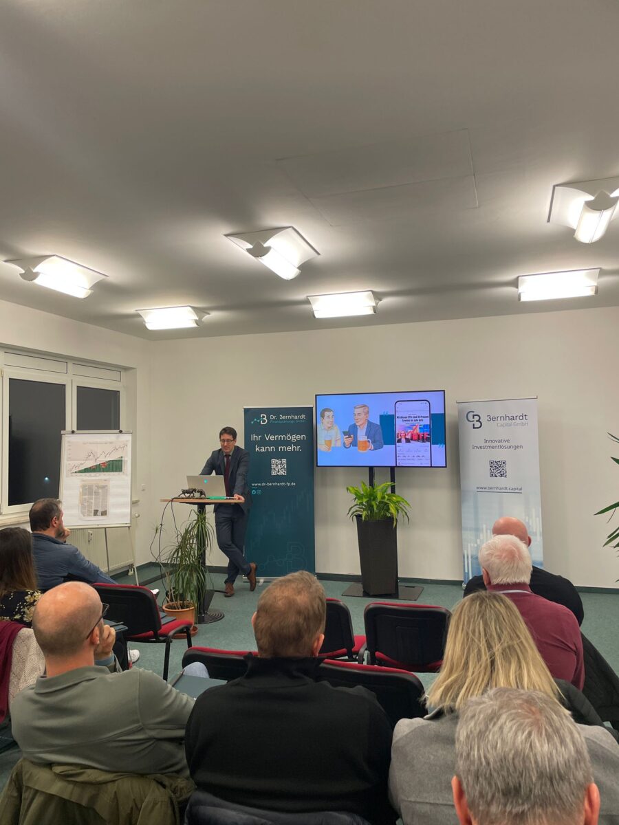 Dr. Bernhardt zeigte auf, dass seine Herangehensweise und die damit verbundenen Investmentmöglichkeiten einzigartig in der Region seien. Er agiert nicht als Vermittler, sondern ist als Portfoliomanager direkt verantwortlich für die institutionellen Anlagestrategien.