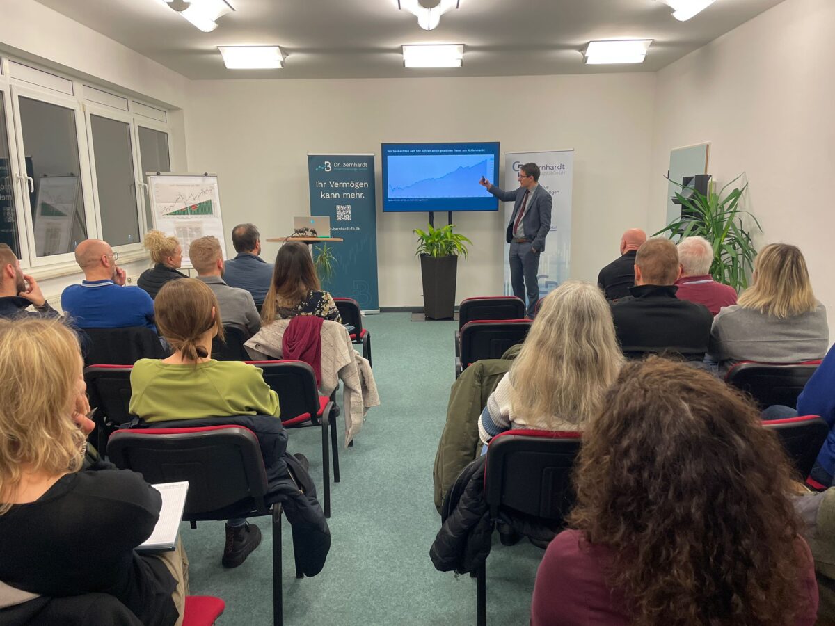 Durch seine langjährige Tätigkeit im internationalen institutionellen Finanzmanagement verfügt Dr. Bernhardt über umfassende Erfahrung im professionellen Asset-Management auf institutionellem Niveau. In seinem Vortrag schilderte er, dass ihn über viele Jahre die Frage beschäftigt habe, warum diese strukturierten und strategischen Vorgehensweisen überwiegend institutionellen Investoren vorbehalten blieben.