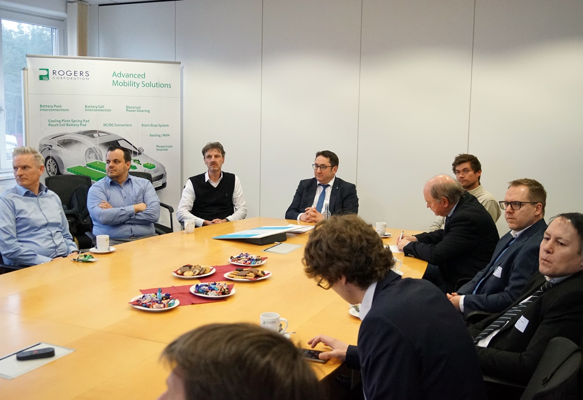 Alexander Legat, Operations Manager von Rogers Germany in Eschenbach, sagte es bei der Begrüßung deutlich: „Wir sind hier zu einem äußerst erfreulichen Ereignis zusammengekommen“. Denn die Rogers Germany GmbH hat einen Forschungsantrag beim Bayerischen Ministerium für Wirtschaft über ein Projekt in Höhe von 1,9 Millionen Euro eingereicht und den Zuschlag bekommen.