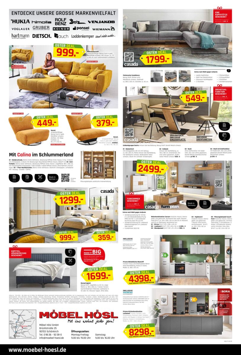 Tolle Angebote und interessante Rabatte warten auf die Kundinnen und Kunden. In allen Abteilungen wird bei Möbel Hösl kräftig der Rotstift angesetzt. Auf Möbel spart sich der Käufer während der Rabattaktion 30 Prozent und auf Küchen 50 Prozent, zuzüglich 10 Prozent Osterrabatt obendrauf.