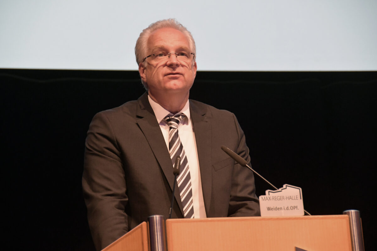Der Aufsichtsratsvorsitzende Josef Schwägerl freute sich über den großen Zuspruch zur Vertreterversammlung, denn die Max-Reger-Halle war fast bis auf den letzten Platz besetzt.