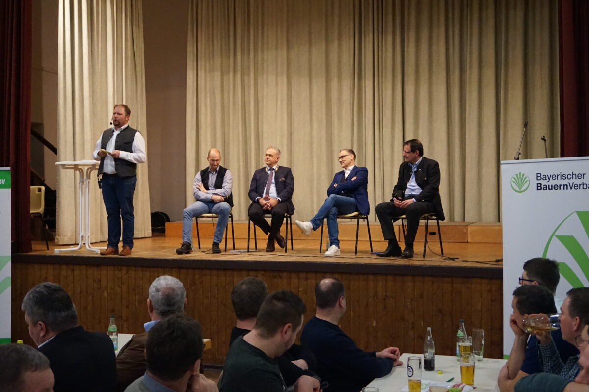 Der stellvertretende Kreisobmann Hubert Schicker übernahm die Begrüßung und die anschließende Moderation der Veranstaltung. Er betonte, dass es in dieser Veranstaltung um eine sachliche Diskussion über Vor- und Nachteile von Landschaftsschutzgebieten gehen soll. Es schloss sich eine Podiumsdiskussion mit der stellvertretenden Landespräsident Ely Eibisch, Landrat Roland Grillmeier, dem Landtagsabgeordneten Martin Schöffel und Bürgermeister Bernd Sommer an.