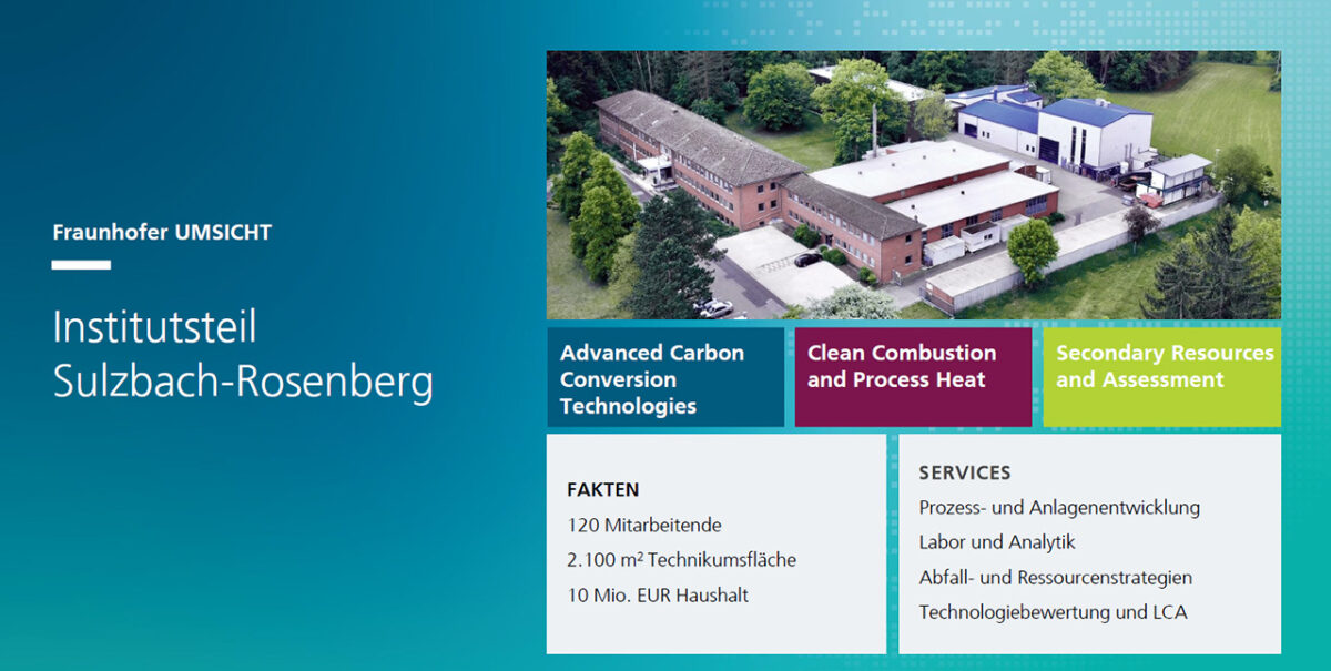 Professor Matthias Franke, Leiter von Fraunhofer UMSICHT, skizziert die Fraunhofer-Gesellschaft als die „führende Organisation für anwendungsorientierte Forschung in Europa“. In seinem Institutsteil in Sulzbach-Rosenberg seien 120 Mitarbeitende mit einem Haushalt von 10 Millionen Euro in den Bereichen Prozess- und Anlagenentwicklung, Labor und Analytik. Abfall- und Ressourcenstrategien, Technologiebewertung und LCA tätig.