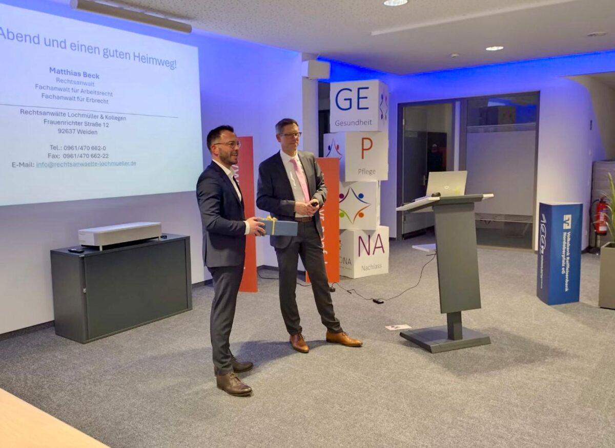 Die zahlreichen Gäste wurden durch Tobias Kaltenecker, Geschäftsführer von GEPVONA, begrüßt. Nach einer kurzen Vorstellung von GEPVONA Institut für Gesundheit, Pflege, Vorsorge und Nachlassabwicklung verwies er auf die Relevanz der Nachlassregelung und leitete er auf den Vortrag von Rechtsanwalt Matthias Beck über. Er informierte ausführlich über die Grundlagen des deutschen Erbrechts, gesetzliche und gewillkürte Erbfolge, Zugewinn und Pflichtteilsregelungen, Steuerfreibeträge und Verschonungstatbestände sowie die Möglichkeiten der Testamentsgestaltung. Die Ausführungen wurden anhand von Praxisbeispielen verdeutlicht.