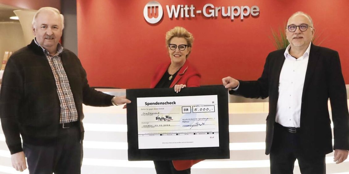 „Unser Verein betreut aktuell 126 Familien mit schwerst erkrankten Kindern. Dafür kommt jede Hilfe gerade richtig. Wir freuen uns sehr, dass die Witt-Gruppe uns in dieser wichtigen Aufgabe unterstützt“, so Putzer. Stefanie Zühlke-Schmidt, Leiterin des Chors und Geschäftsführerin Einkauf bei der Witt-Gruppe, überreichte den Spendenscheck gemeinsam mit Manfred Wiechert, Bereichsleiter Unternehmensplanung und Betriebswirtschaft, an Herbert Putzer. „Eigentlich sollte das Konzert ja schon 2020 stattfinden, musste aber aufgrund der Pandemie verschoben werden“, so Zühlke-Schmidt. „Umso schöner, dass jetzt endlich die Spendenübergabe möglich wurde und das Geld den Kindern zugutekommen kann!“