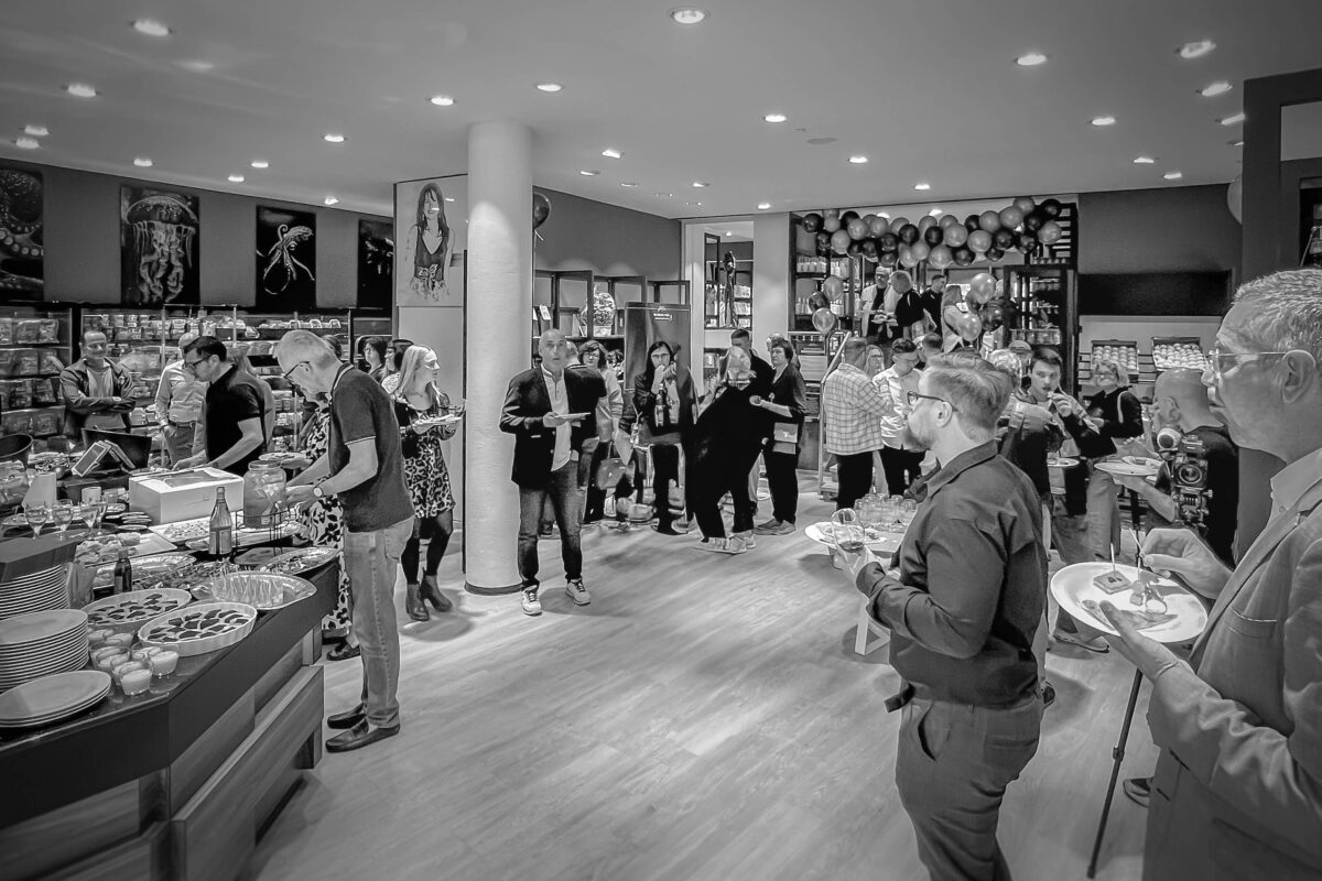 Zum offiziellen Empfang machten neben vielen Freunden, Verwandten und Bekannten auch zahlreiche Personen des öffentlichen Lebens dem Inhaber und seinem Team die Aufwartung. Massimo Azzarone hat das Ladengeschäft zusammen mit seinen Cousins Daniele und Raffaele zum Großteil selbst eingerichtet und die drei werden es auch künftig zusammen betreiben. Damit auch “von Oben” alles seine Ordnung hat, segnete der katholische Pfarrer Markus Schmid die Räume und wünschte dem Inhaber, seinen Mitarbeitern und Kunden Glück und Gottes Beistand.
