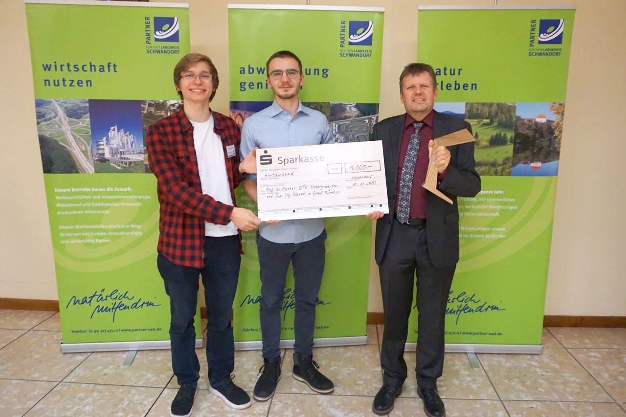 Das Preisgeld in Höhe von 1.000 Euro spendeten die beiden Preisträger an die Amberger Regionalgruppe des Vereins Technik ohne Grenzen e. V., der sich die Verbesserung der Lebensbedingungen in Entwicklungsländern zum Ziel gesetzt hat.