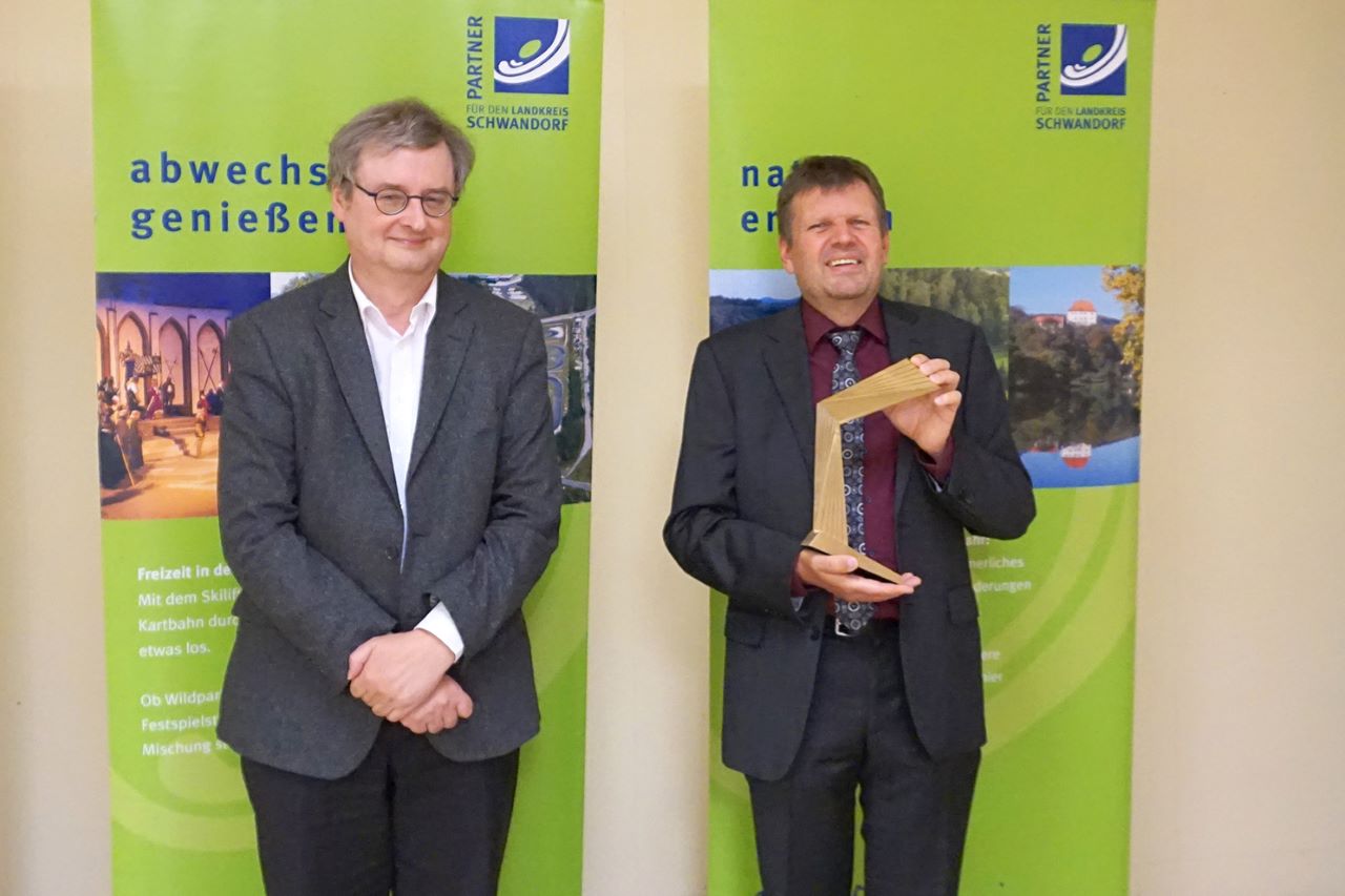 Verliehen wird der Preis vom Partnerverein Schwandorf bereits seit 2010. Da die Preisverleihung für das Jahr 2020 coronabedingt leider nicht stattfinden konnte, wurde dies jetzt im kleinen Rahmen nachgeholt. Die weiteren Preisträger des Zukunftspreises sind das reha-team Betzlbacher OHG Schwandorf in der Kategorie Handwerk sowie die nuwave-media in der der Kategorie Industrie – Dienstleistung – Handel. Alle Preisträger durften sich neben dem Preisgeld über eine hochwertige Bronzeskulptur freuen.