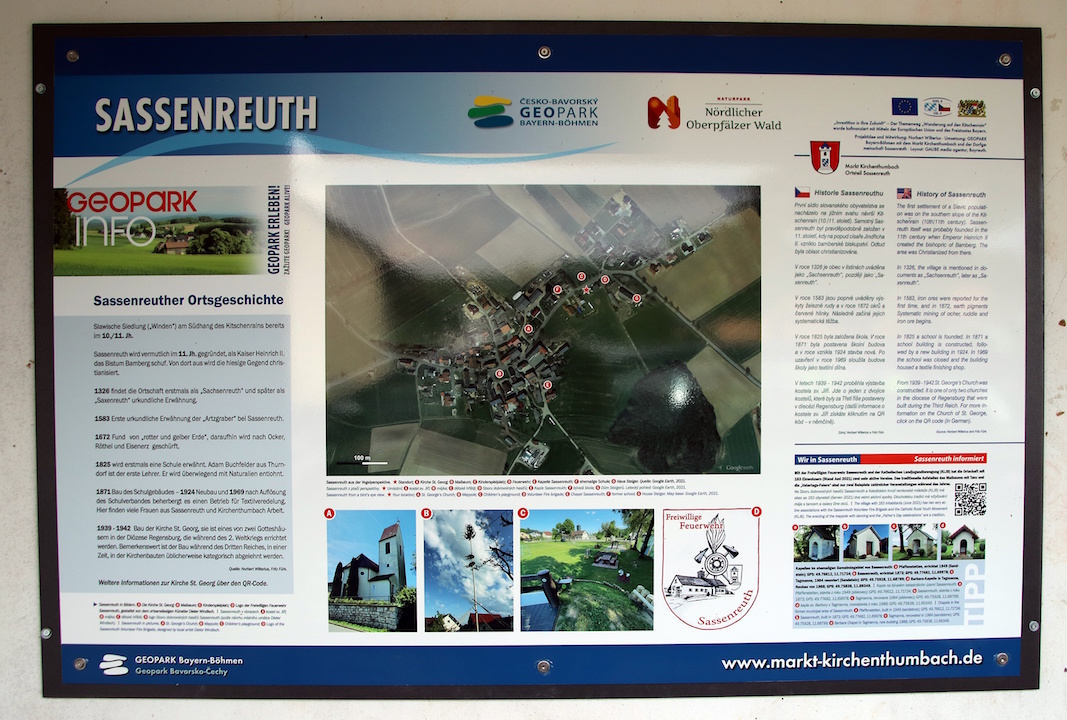 Auf dem insgesamt acht Kilometer langen Weg informieren mehrere Infotafeln über die Geologie, Erdgeschichte und die frühere Bergbautätigkeit in diesem Gebiet. Denn über drei Jahrhunderte hinweg grub man in der „Sassenreuther Kreidemulde“ nach Farberden und auch nach Eisenerzen. Um diesen Teil der Sassenreuther Geschichte aufrechtzuerhalten, aber auch Besuchern davon einen Eindruck zu geben, wurde der Geo-Wanderweg ins Leben gerufen.