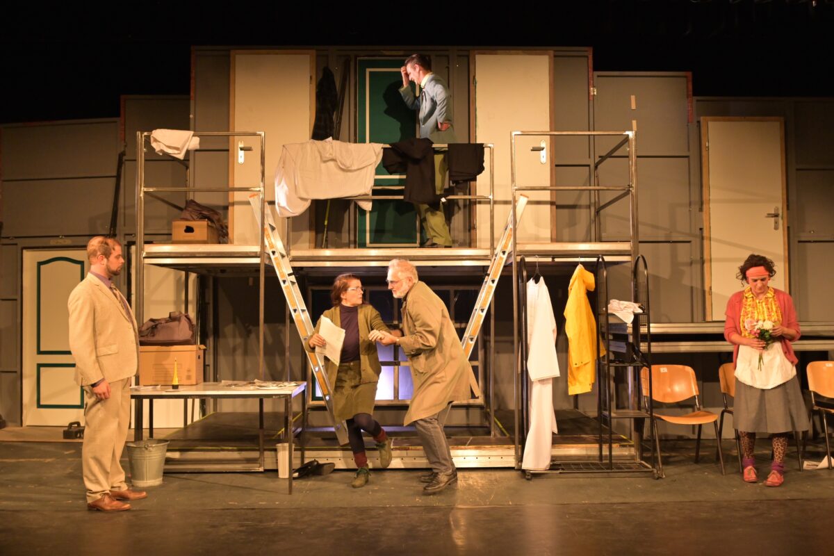 Mit der Produktion von „Der nackte Wahnsinn“ nach der Komödie von Michael Frayn feierte das LTO die nächste Premiere und gleichzeitig die letzte Inszenierung von Till Rickelt als künstlerischem Leiter am LTO. „Seit ich 2014 die künstlerische Leitung des Landestheaters Oberpfalz übernommen habe, gab es immer wieder Überlegungen, das Stück auf den Spielplan zu setzen. Trotz oder vielleicht gerade wegen seiner perfekten Konstruktion schreckte ich immer davor zurück – zu groß schienen mir die technischen und darstellerischen Anforderungen. Während zwei Jahren Pandemie, in denen ein Virus immer wieder unsere Plane durchkreuzte, wuchs die Überzeugung, sich zukünftig nicht mehr von Bedenken und Ängsten von Wunschprojekten abhalten zu lassen”, so Rickelt.