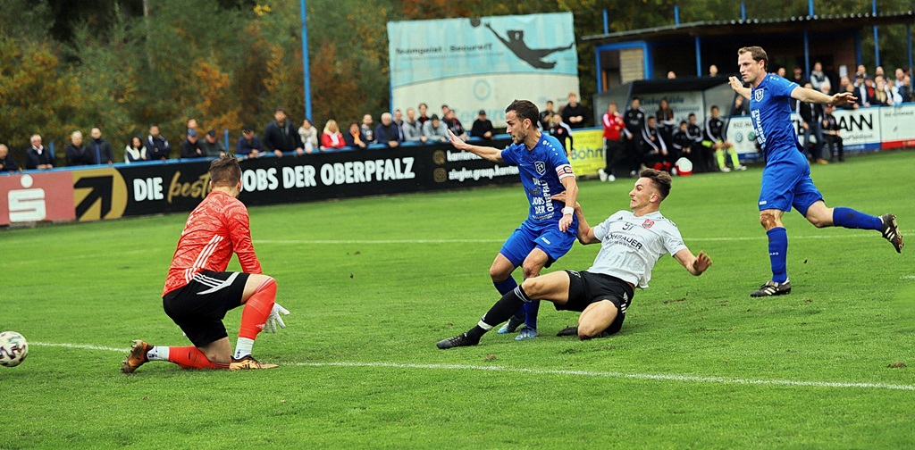 Gästekeeper Roland Frischholz hielt seinen Kasten mit beherztem Eingreifen lange Zeit sauber. Gegen das 1:1 von Johannes Pötzl, der öffnende Querpass kam von Stephan Herrman, war der Torhüter chancenlos. Die Heimelf war in der Folge einem „Dreier“ näher als der Tabellenführer. Christian Ermer (81.), Joker Lukas Neumeier (92.) mit Schüssen und Bastian Strehl (94.) mit einem Kopfall kamen dem SC-Tor in der Schlusssequenz gefährlich nahe.