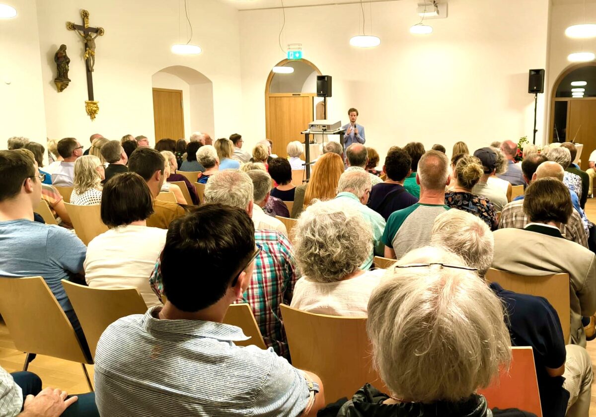Das Interesse war riesig: Der große Saal des renovierten Lobkowitz-Schlosses in Waldthurn war mit gut 120 Personen buchstäblich bis auf den letzten Platz besetzt. Auf Einladung von Dr. Gustav und Lydia Moissl (ppForum-Oberpfalz) sprach Dr. phil. Jonas Tögel am 1. August über „Sanfte Macht – wie mit Soft-Power-Techniken unsere Gedanken sowie unser Verhalten gesteuert werden“. Der Organisator Dr. Moissl begrüßte Redner und Publikum sowie die drei Bürgermeister der Marktgemeinde Waldthurn und Mitglieder des Marktrats.