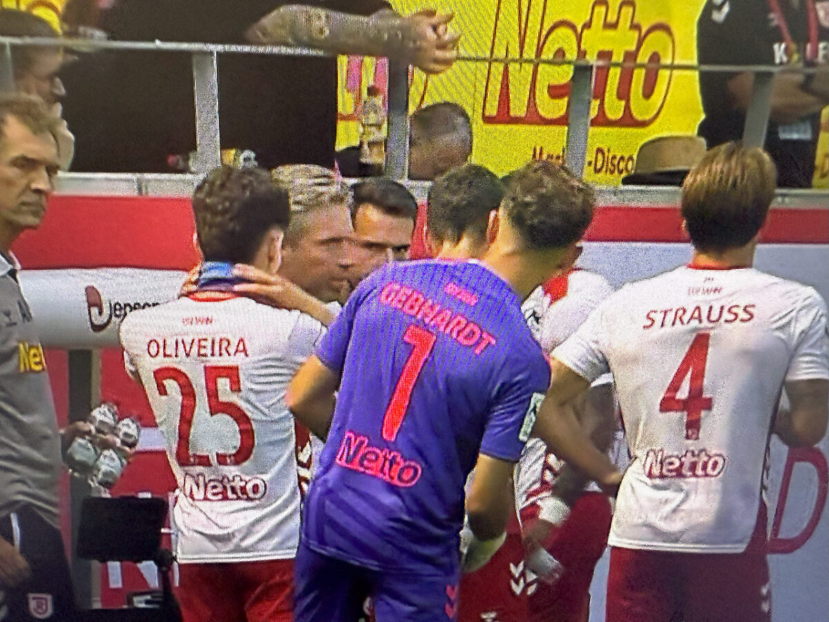 Bei Kühles Aktion war auch Emotion im Spiel, nach dem Gegentor und einem unnötigen Ballverlust – jeder der Kühle kennt, weiß, das war keine Absicht, er kommt einfach zu spät. Aber auch ohne Rote Karte: Wir haben ein Heimspiel, die Fans waren super, und wir bringen keinen Funken rüber, wir müssen vieles überdenken, aber einen kühlen Kopf behalten und weitermachen.“