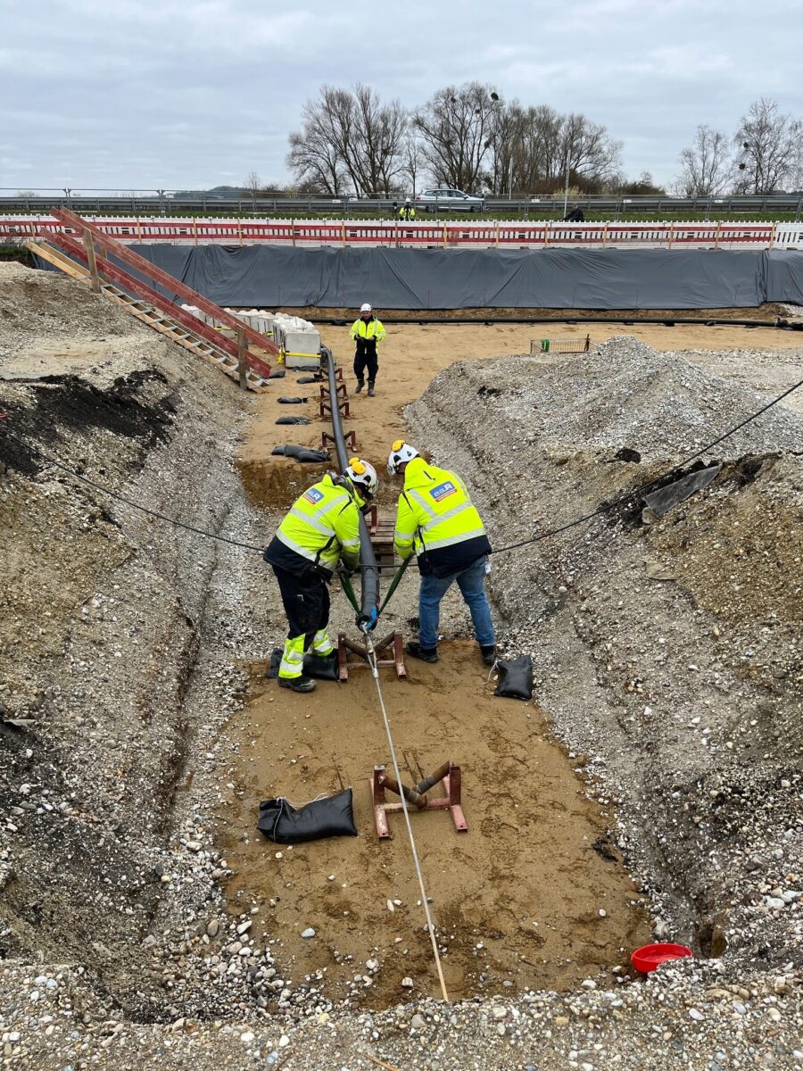 Dann soll endlich gebaggert werden. Auf dem Abschnitt Marktredwitz bis Pfreimd werden vier bis sechs Kolonnen gleichzeitig unterwegs sein. Der Ablauf: Kabelschutzrohre werden verlegt, weitgehend über offene Grabebauweise. Die Leerrohre werden verfüllt. Dann erfolgt der Einzug der 1.700 Meter langen Kabelabschnitte über Winden.
